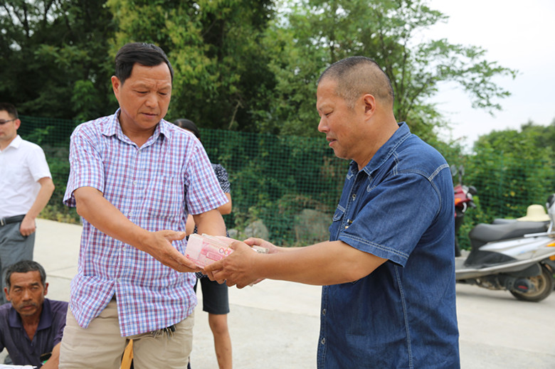 8月10日,筆者來(lái)到石門(mén)縣磨市鎮(zhèn)鮑家渡村,踏訪這家全省規(guī)模最大的現(xiàn)代化家禽扶貧養(yǎng)殖基地,恰巧碰上首批飼養(yǎng)的石門(mén)土雞正在出欄。10多輛運(yùn)雞車在云繚霧繞的山間公路上穿梭,20多位貧困戶組成的抓雞裝雞隊(duì)伍忙個(gè)不停。詢問(wèn)他們一天的收入情況,一位60多歲的老農(nóng)笑著說(shuō):“雞場(chǎng)是按抓雞的總重量算的,一公斤9分錢(qián),我昨天拿到110元,今天應(yīng)該還多些。”