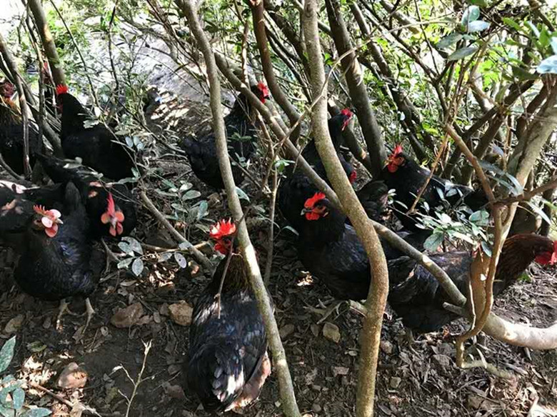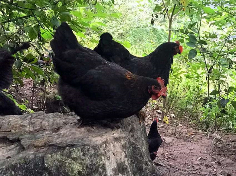 在良好的生態(tài)環(huán)境中,石門土雞飲山泉,吃玉米,食野草,啄百蟲,山水滋潤,自然散養(yǎng),能吃能跑,能爬能飛,被石門土家人譽為大山里的“黑鳳凰”。