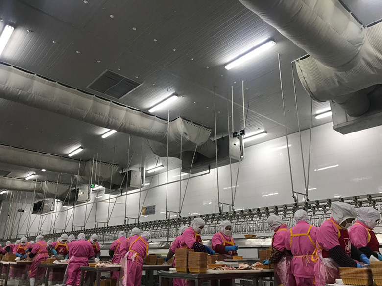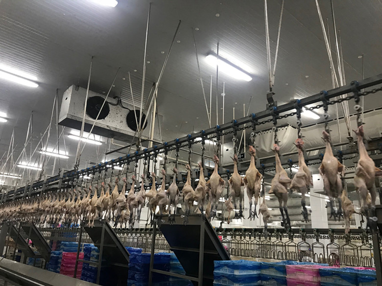 掛雞平臺、水冷車間、風(fēng)冷車間、裝雞平臺、分割車間、質(zhì)控中心,他們邊看,邊聽,邊咨詢,邊拍照……