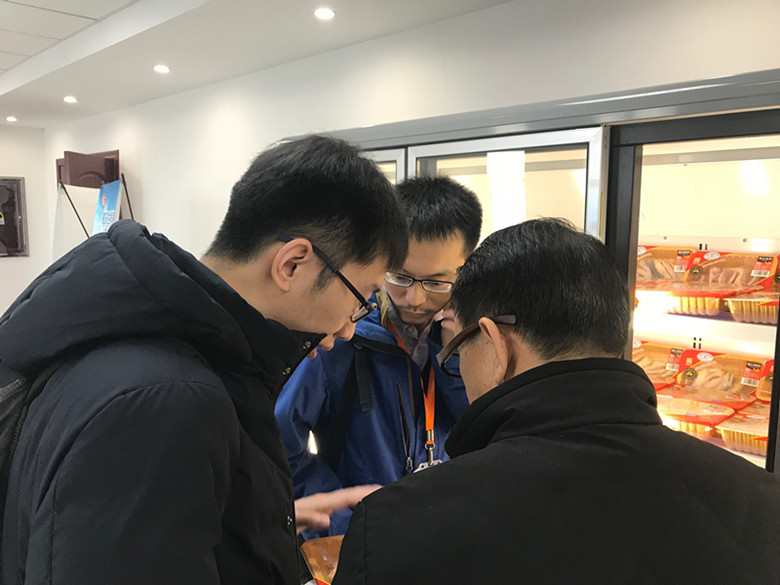 湘佳生鮮家禽產品陳列室,茶園雞、橘園雞、青腳雞、土黑雞、黃油母雞、麻雞、石門土雞等各種雞肉分割品,老人雞肉、兒童雞肉、孕產婦雞肉以及各種雞肉調理品琳瑯滿目,兩位年輕人逐一拿出一件件陳列品,仔細辨認,并從包裝設計、產品特性、養(yǎng)殖日齡、產品說明等方面提出了許多合理化建議,并希望湘佳生鮮家禽要更多地順應“新零售”的趨勢,不斷抓住消費者的購買“痛點”。