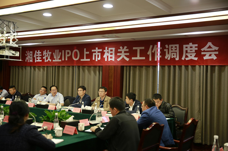 4月9日下午,常德市人大副主任、石門縣委書記譚本仲同志在湘佳食品產(chǎn)業(yè)園主持召開湘佳牧業(yè)IPO上市工作調(diào)度會。