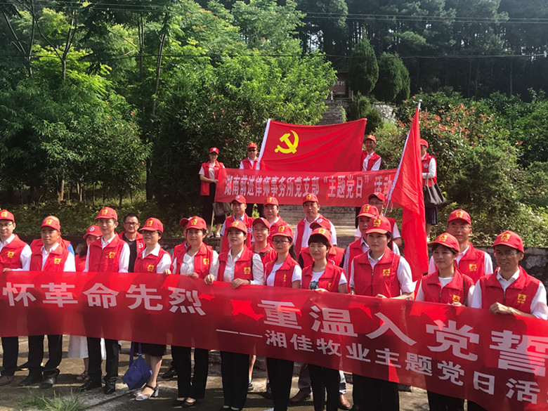 南鄉(xiāng)起義烈士:91年過去了,我們沒有忘記! 6月23日上午,湖南省石門縣夾山鎮(zhèn)西周村。雨后初晴,青山泛綠,黨旗飄飄,衣衫鮮紅。一場莊嚴的“緬懷革命先烈,重溫入黨誓詞”活動在這里如期舉行。組織者:湖南湘佳牧業(yè)股份有限公司黨支部、石門縣前進律師事務(wù)所黨支部。上午9點,西周村村部。湘佳牧業(yè)和前進律師事務(wù)所黨支部舉辦了“獻愛心”活動,為該村5位烈士后代和貧困戶每戶發(fā)送了500元慰問金和30